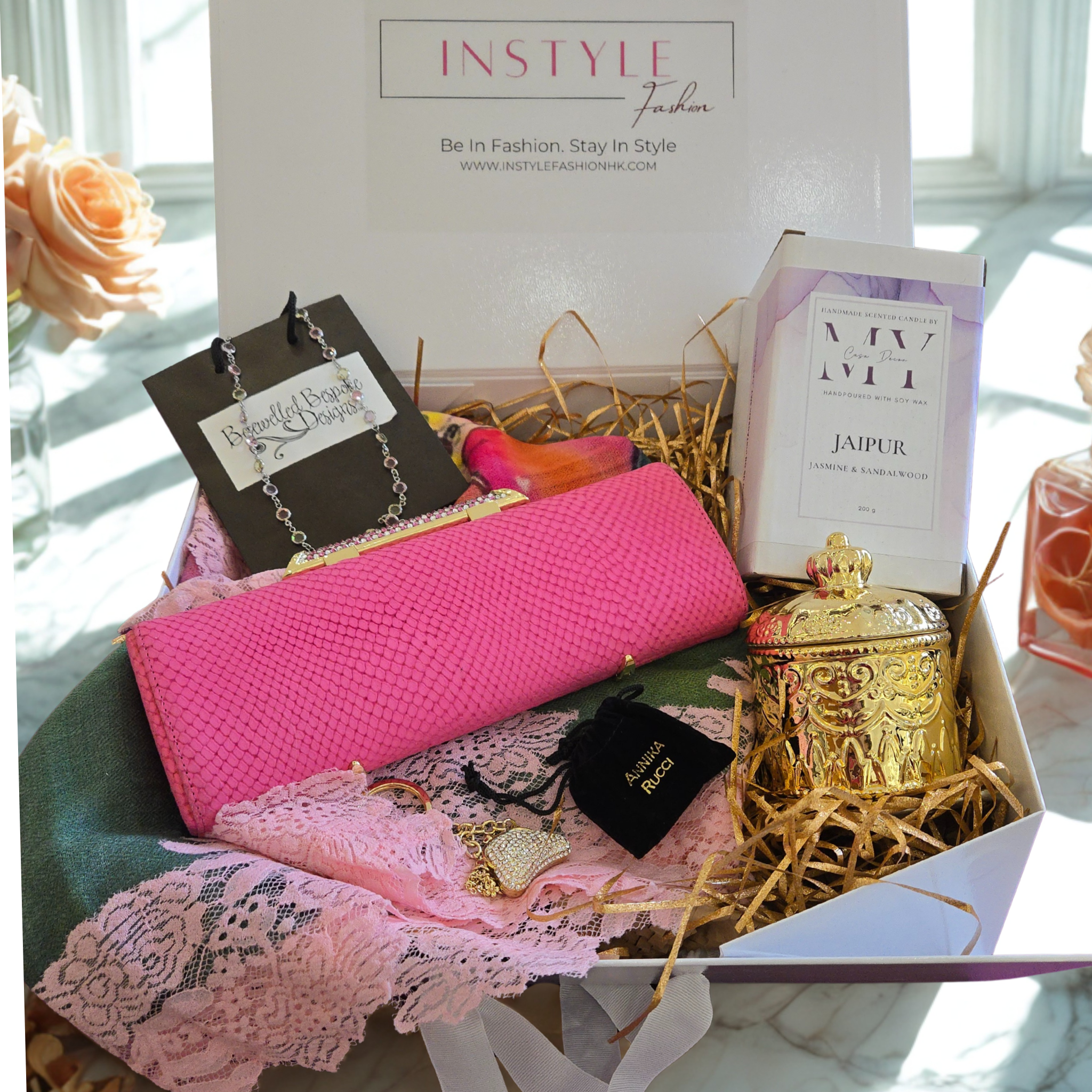 Let InStyle Fashion HK help create beautiful, custom gift hampers tailored to your budget and style.  We offer a wide range of fashion handbags, jewellery, shawls, home décor, and more – all curated with love in Hong Kong.
