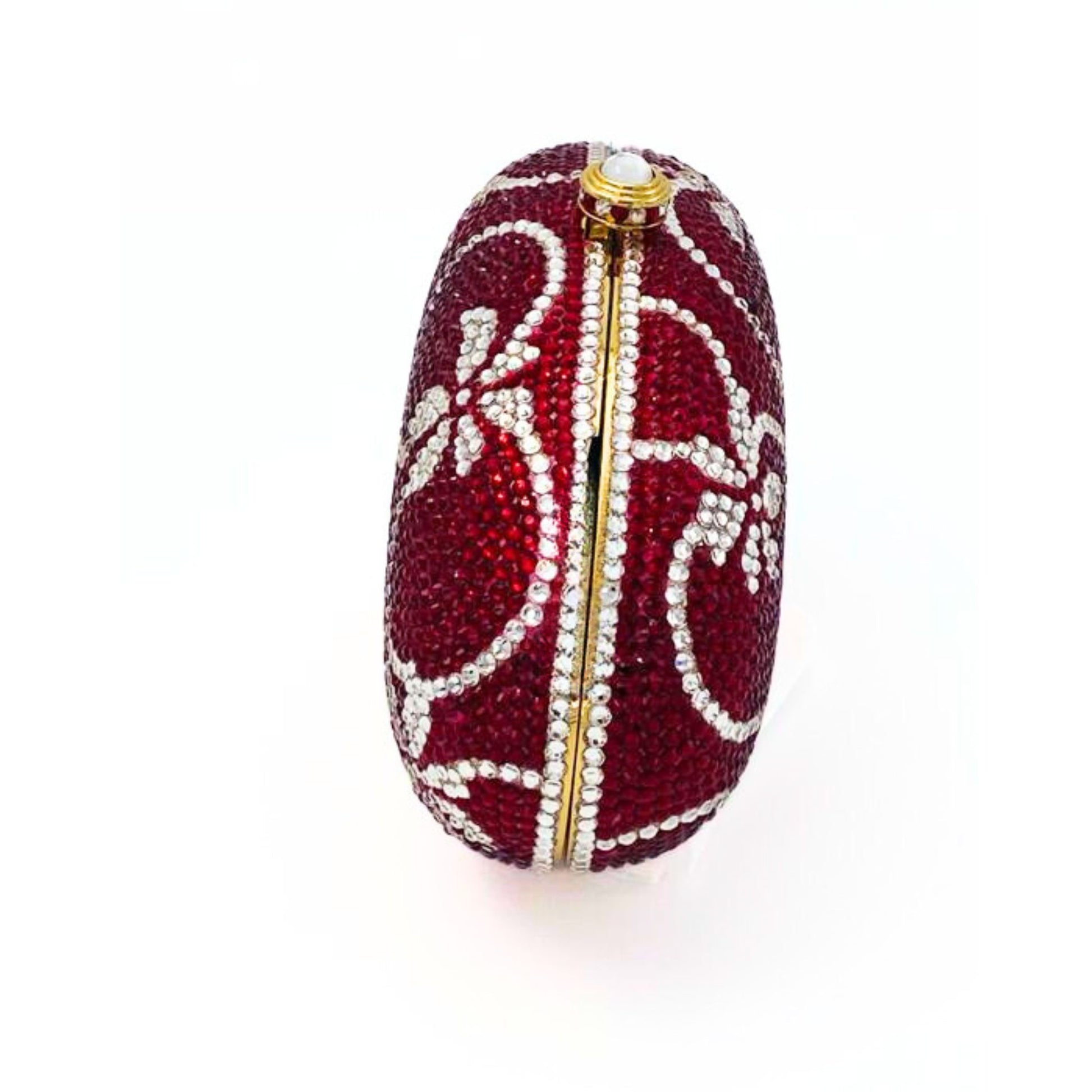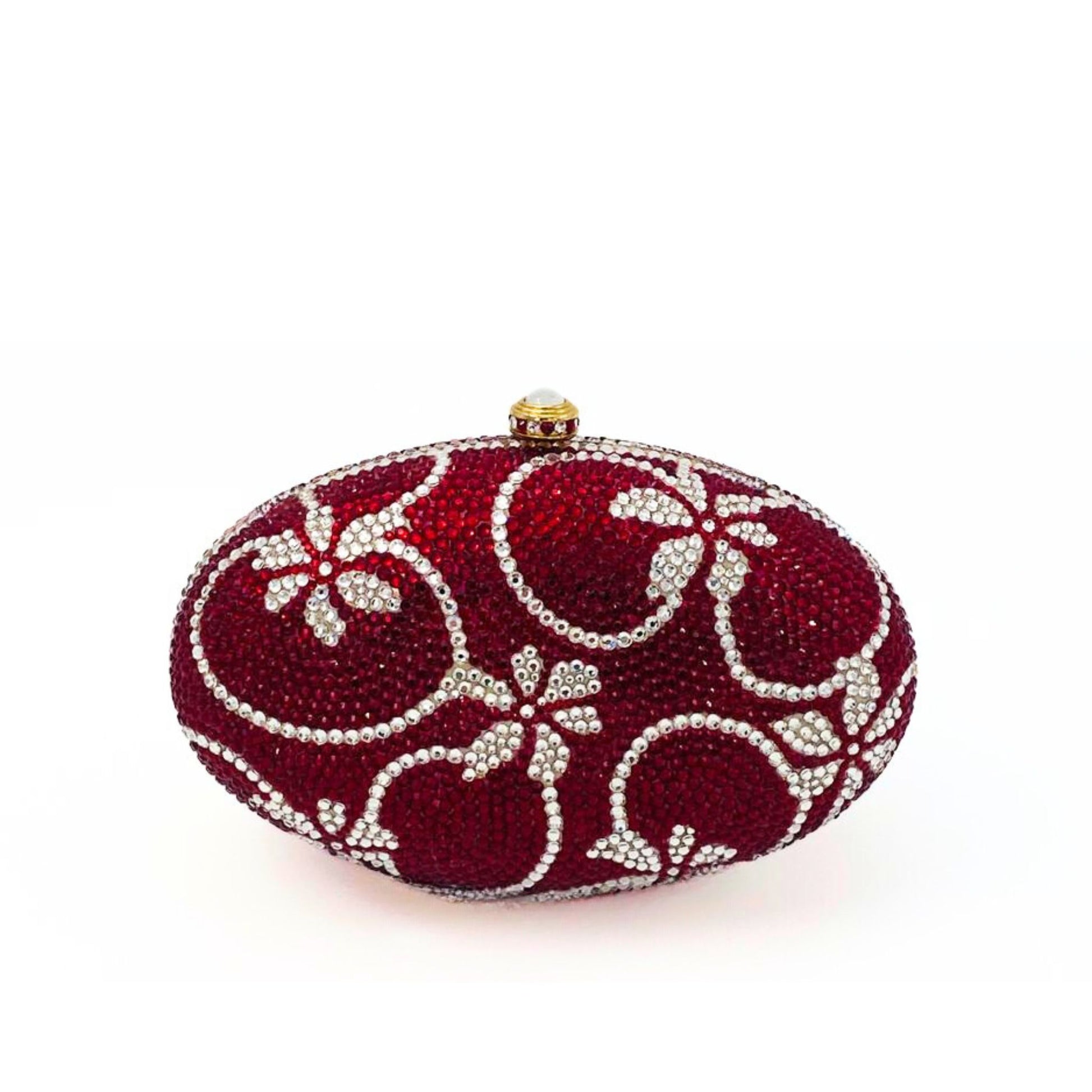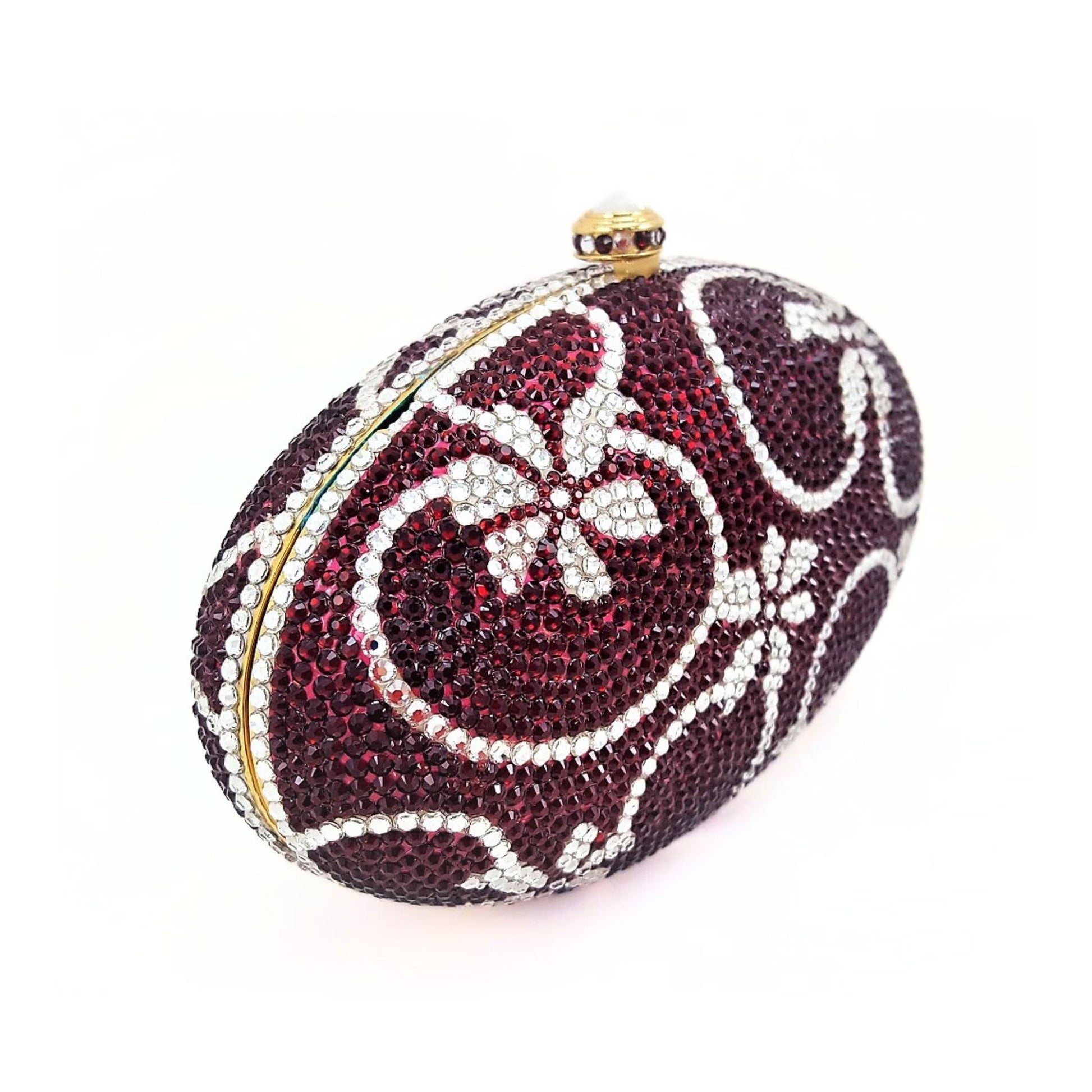 Gold plated brass metal base with beautiful hand-set floral Austrian crystals design allover (Siam & Crystal). Comes with soft metallic Gold PU, and removable flat metal chain for hands-free use.