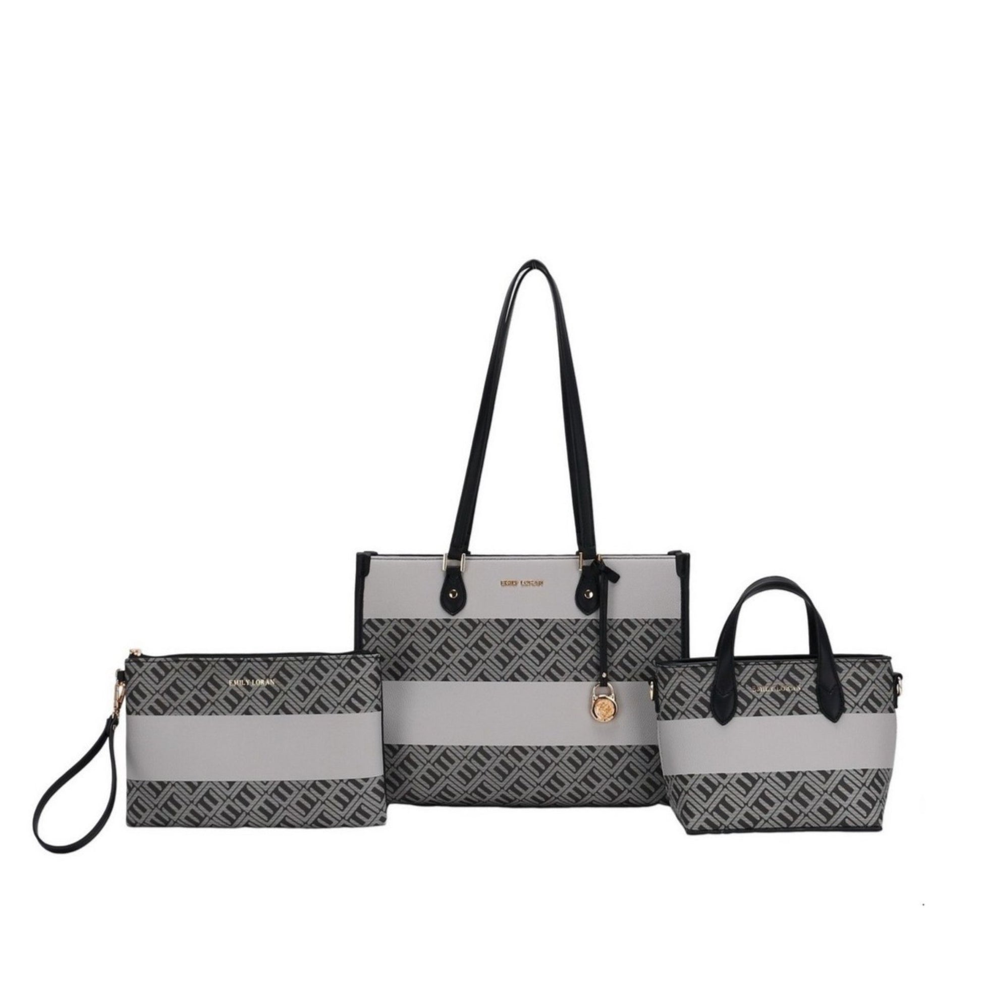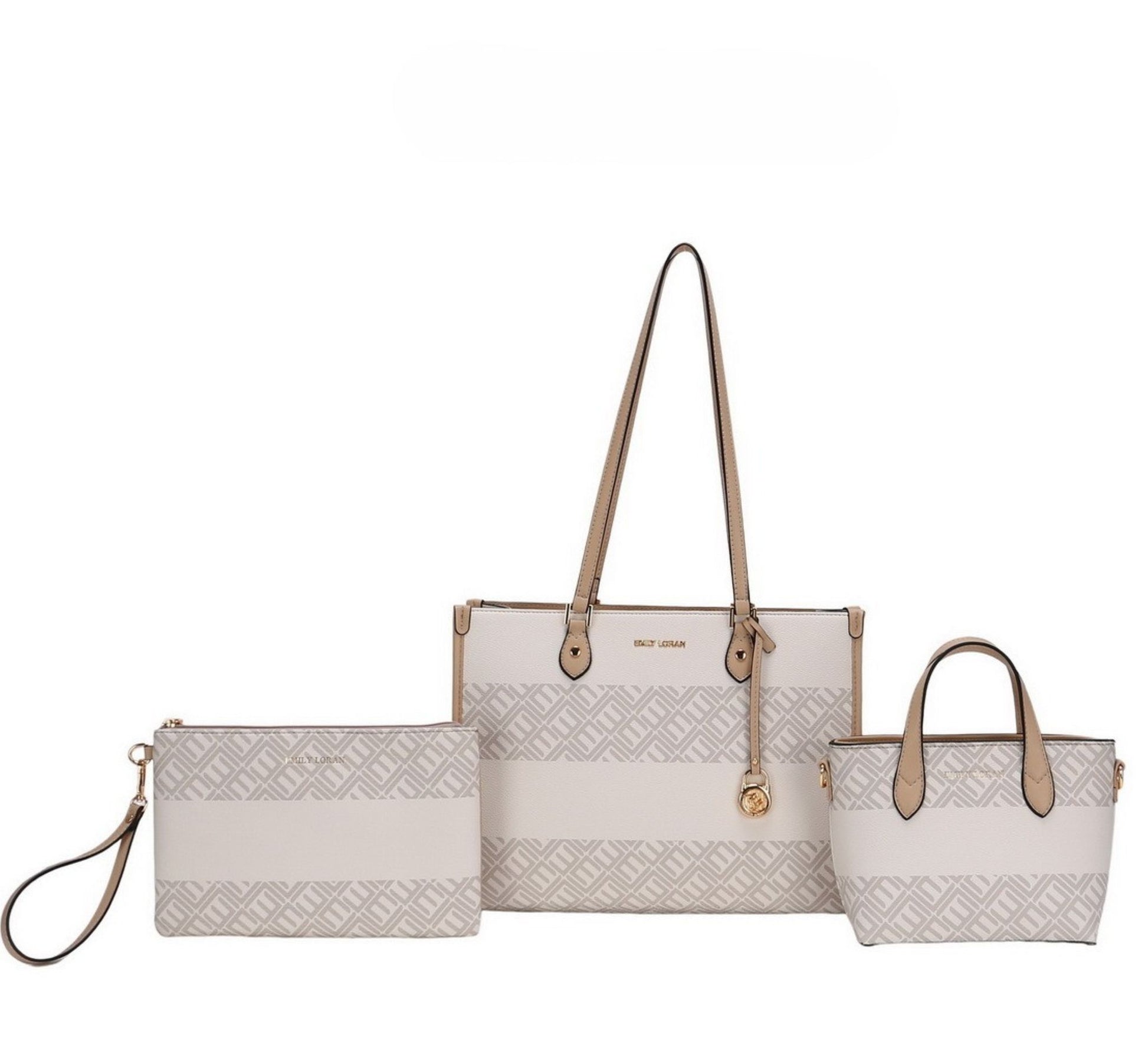 Beige 3 piece Tote Bag Set with Small Bag and Pouch