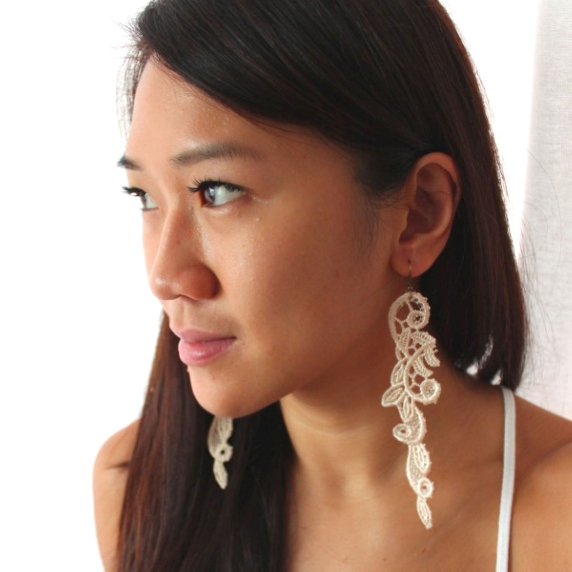 Vintage lace upcycled earrings reworked into an elegant modern creation. Featuring 14K gold-filled French S-hooks.