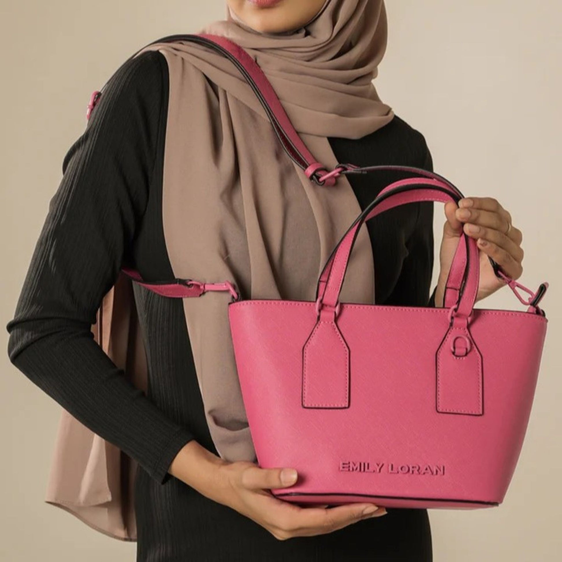 Fuschia Pink Satchel Tote with Embossed Strap