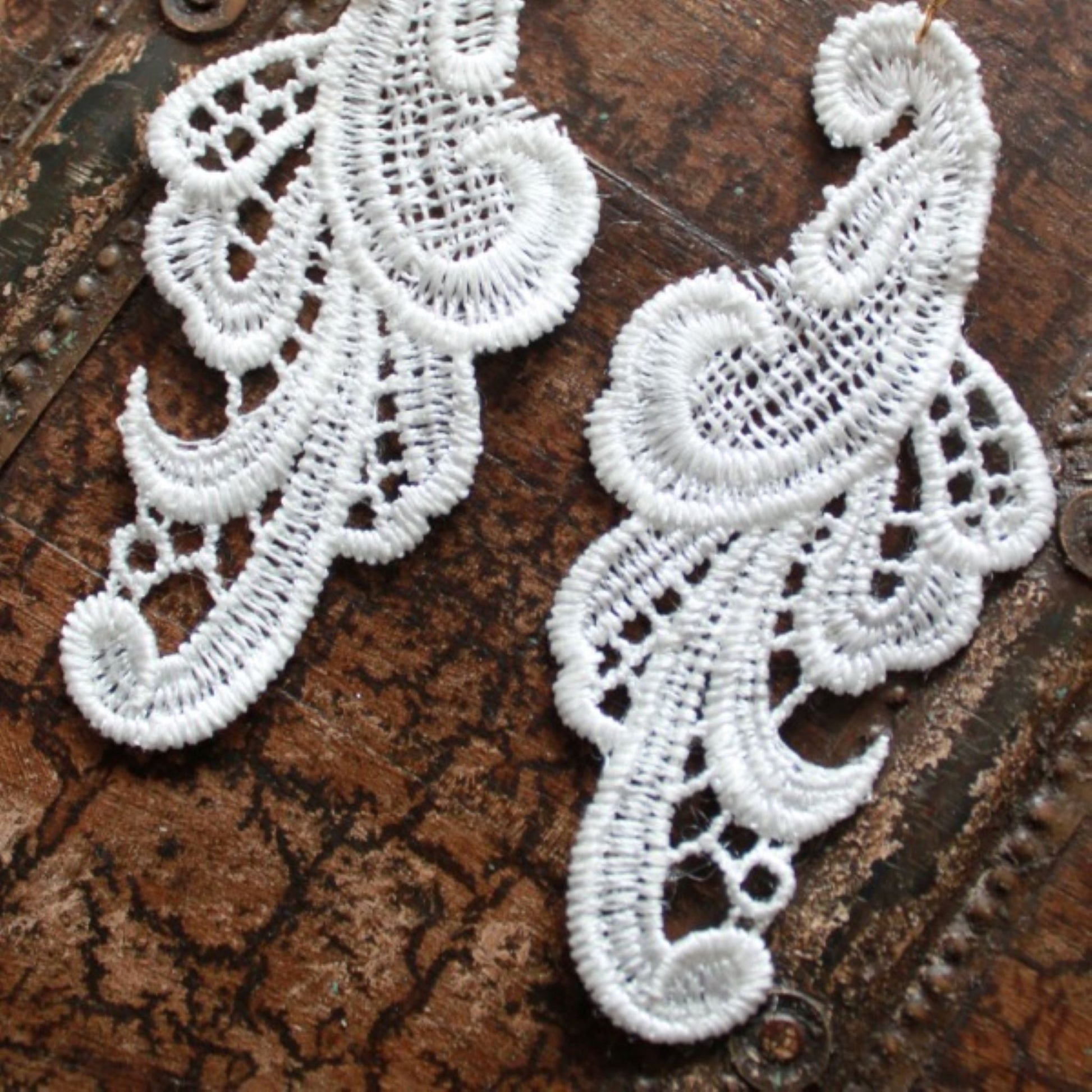 Vintage lace upcycled earrings reworked into an elegant modern creation. Featuring 14K gold-filled S-hooks.