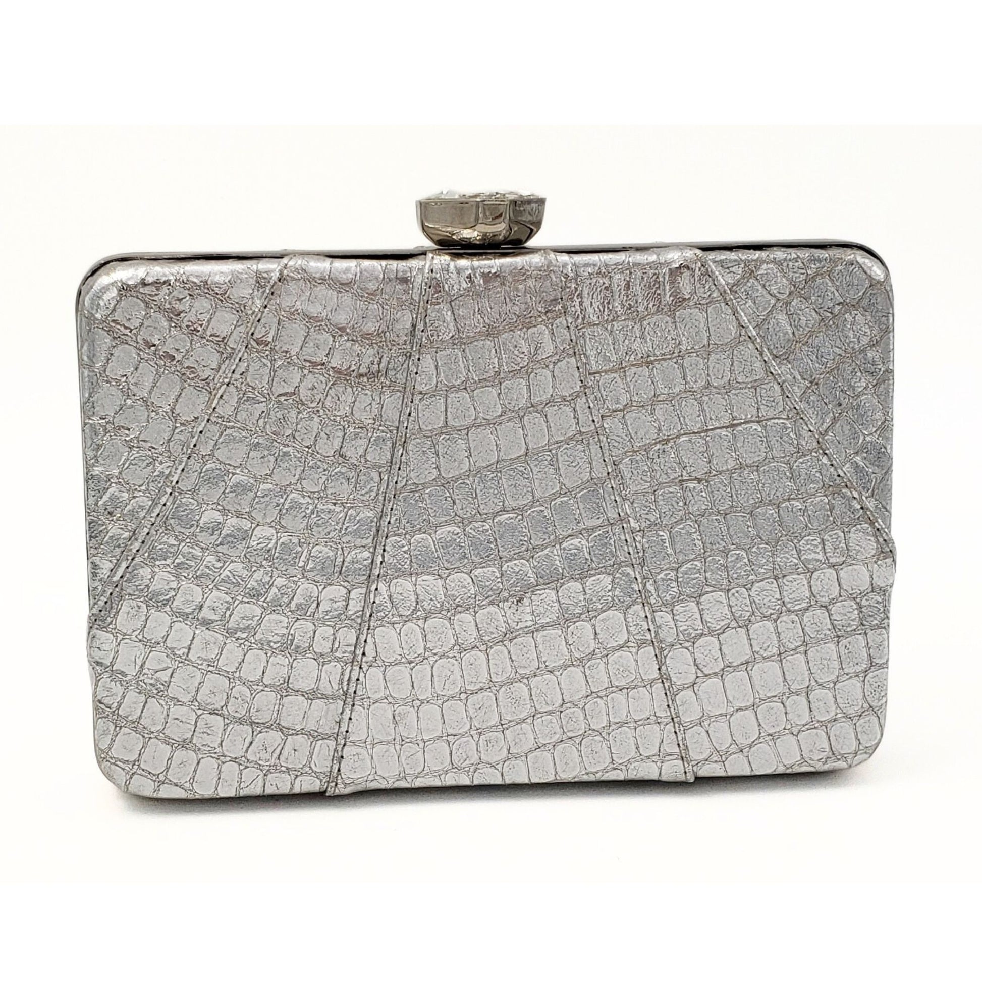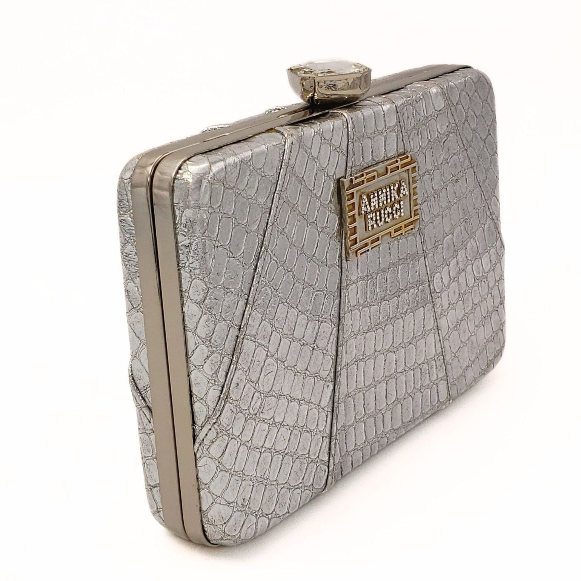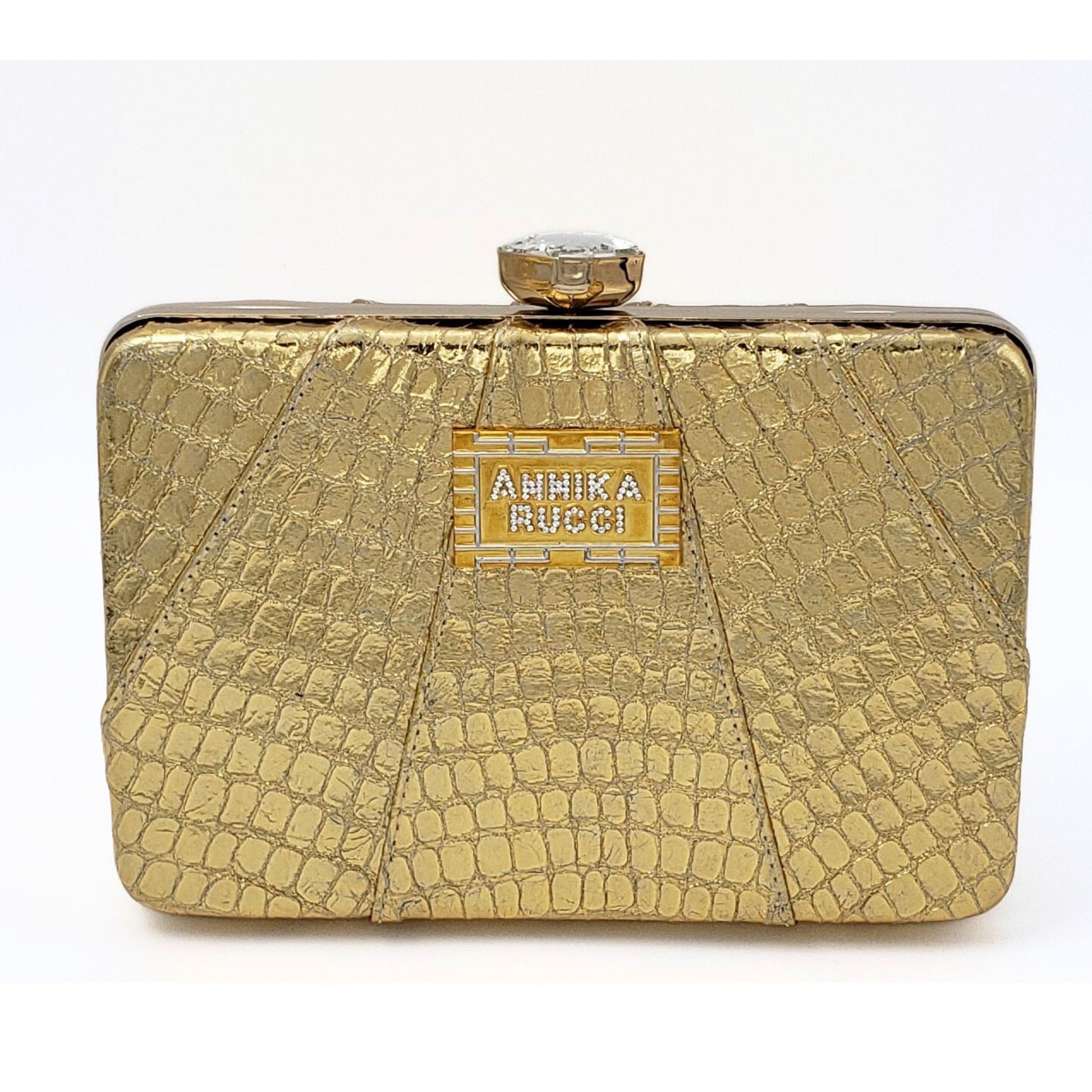 Snake embossed textured shiny Italian leather bound hard clutch featuring a push back crystal clasp, and featuring a crystallised “Annika Rucci” metal logo. Interior featuring striking Annika Rucci fuschia pink satin. Comes with detachable snake chain, and beautifully boxed with a keepsake bag. Slim yet large enough to accommodate your smartphone and other essentials.