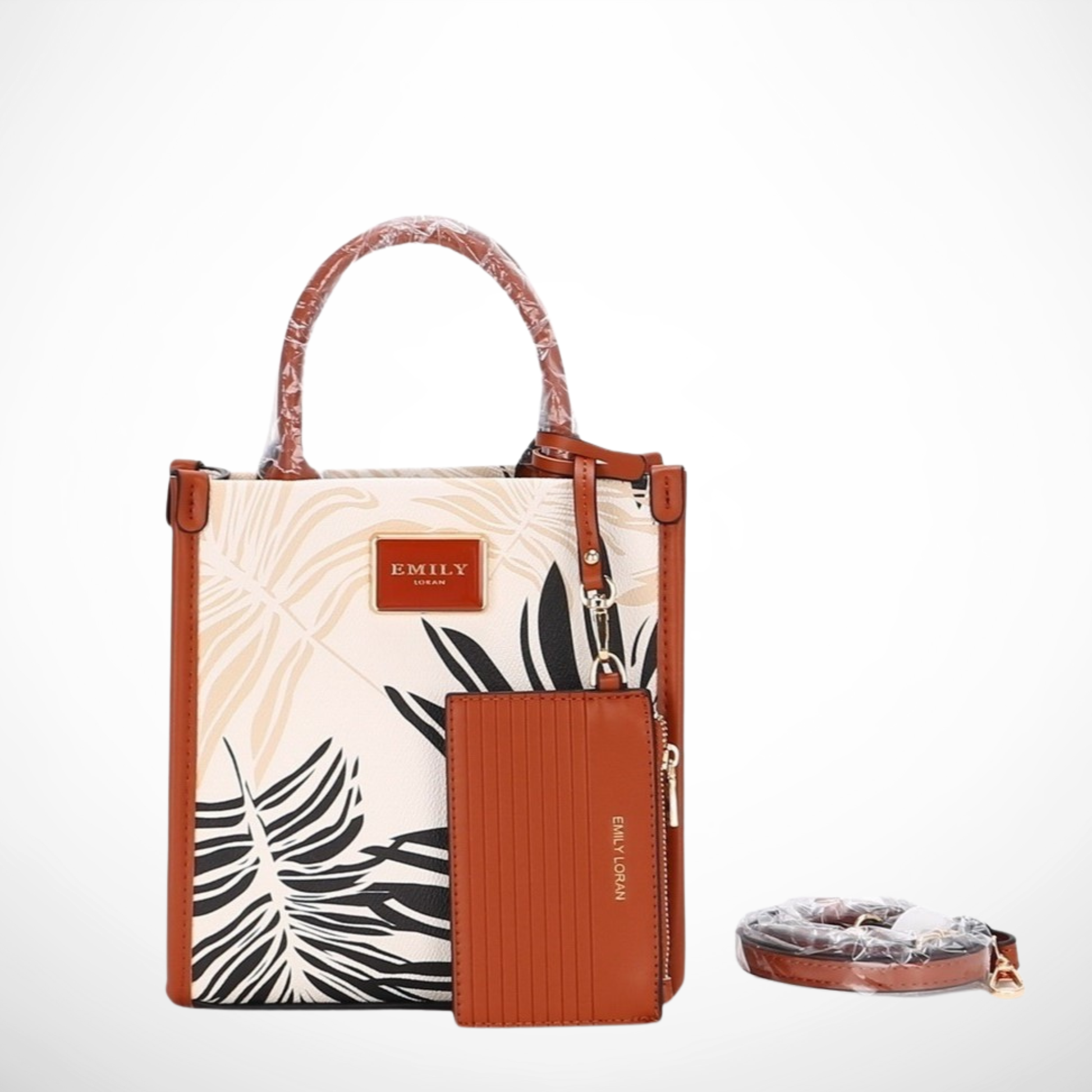 Elevate your everyday style with this Tropical Leaf Satchel Bag. Featuring a chic beige-and-black botanical print, this compact handbag includes a matching zipped pouch and adjustable strap for versatile wear. Perfect for city strolls or weekend getaways, shop this trendy satchel bag online now—limited stock available!
