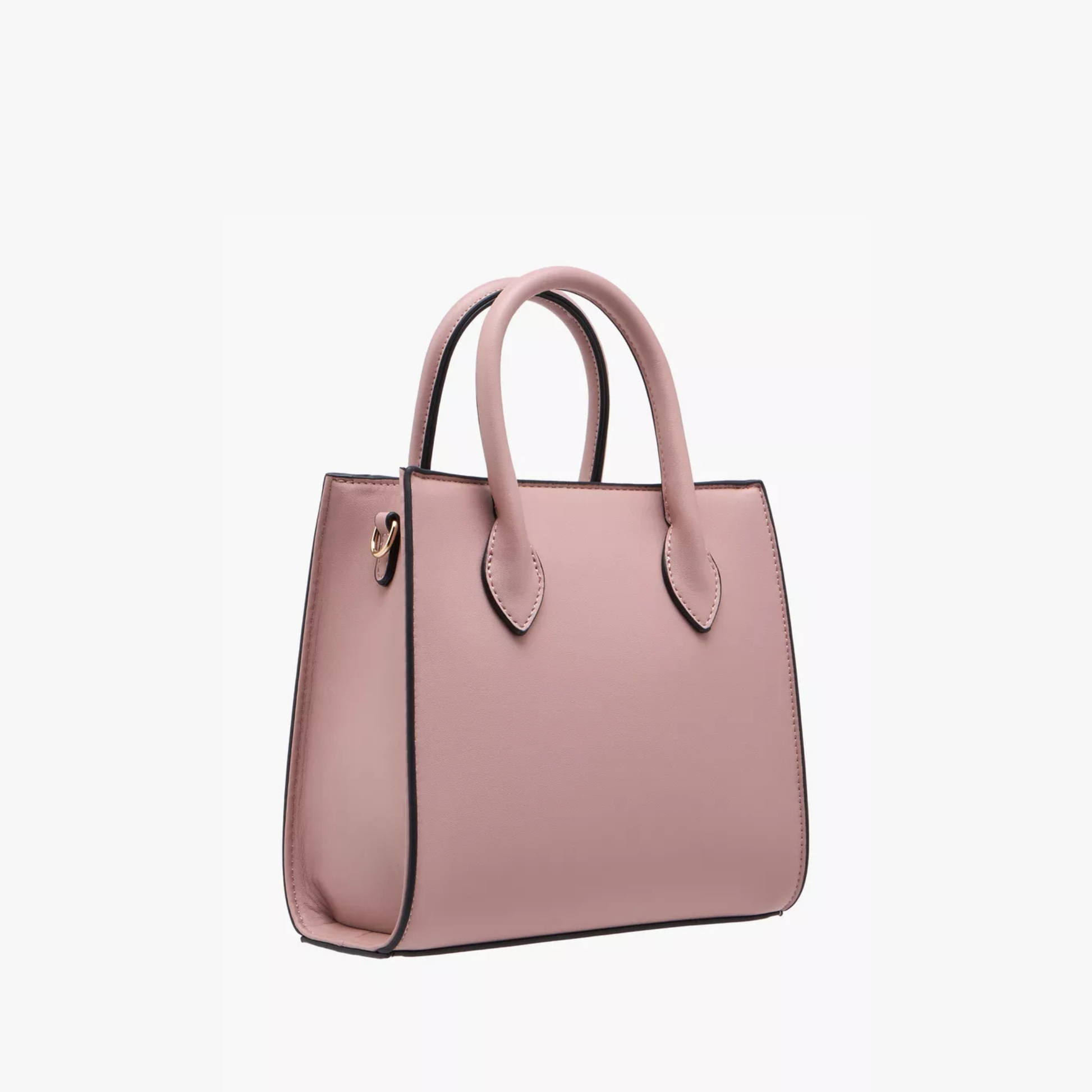 Nude Pink Snake Print Panel Tote Bag with Zip Closure