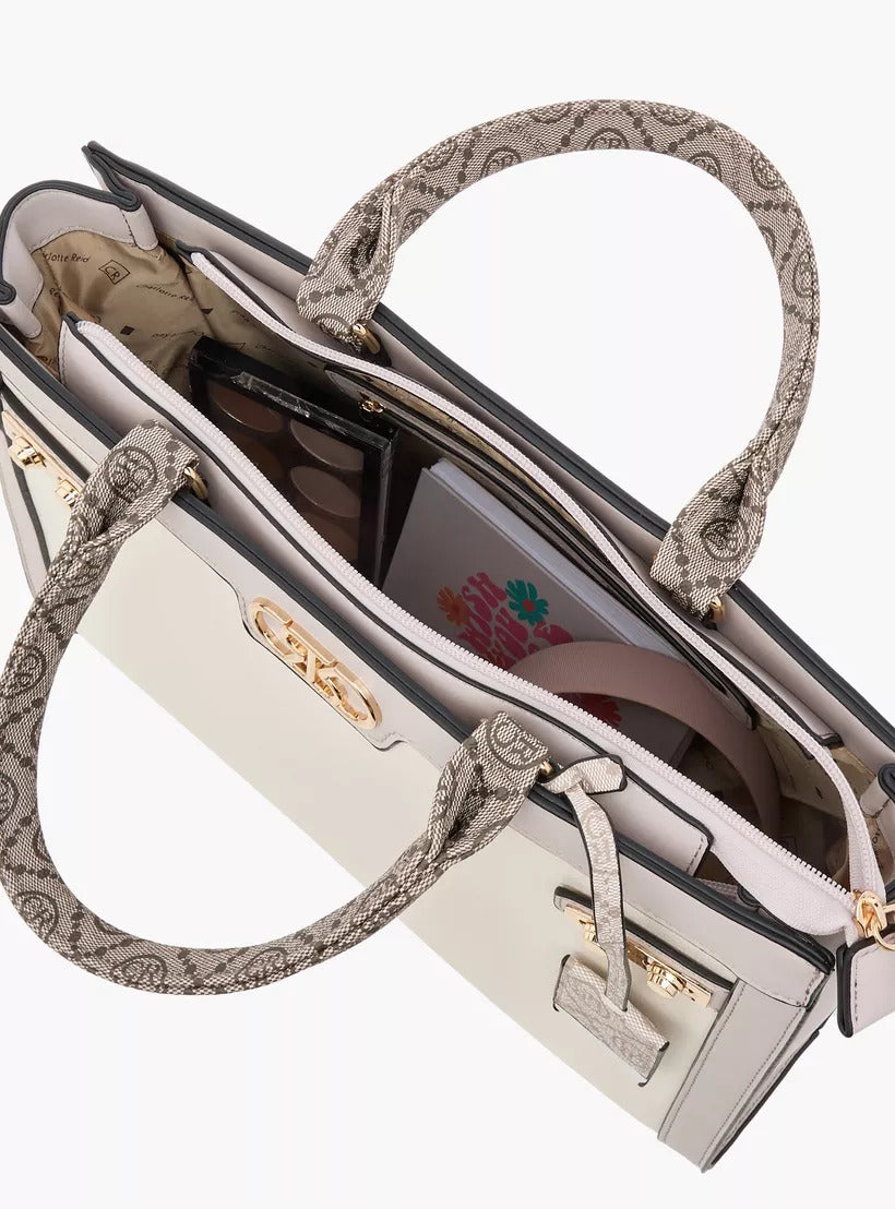 Classy tote city handbag featuring a double handle and a detachable strap, this bag offers versatile carrying options. The zip closure ensures your belongings remain secure. Its textured finish adds a touch of sophistication, making it a perfect accessory for any occasion.